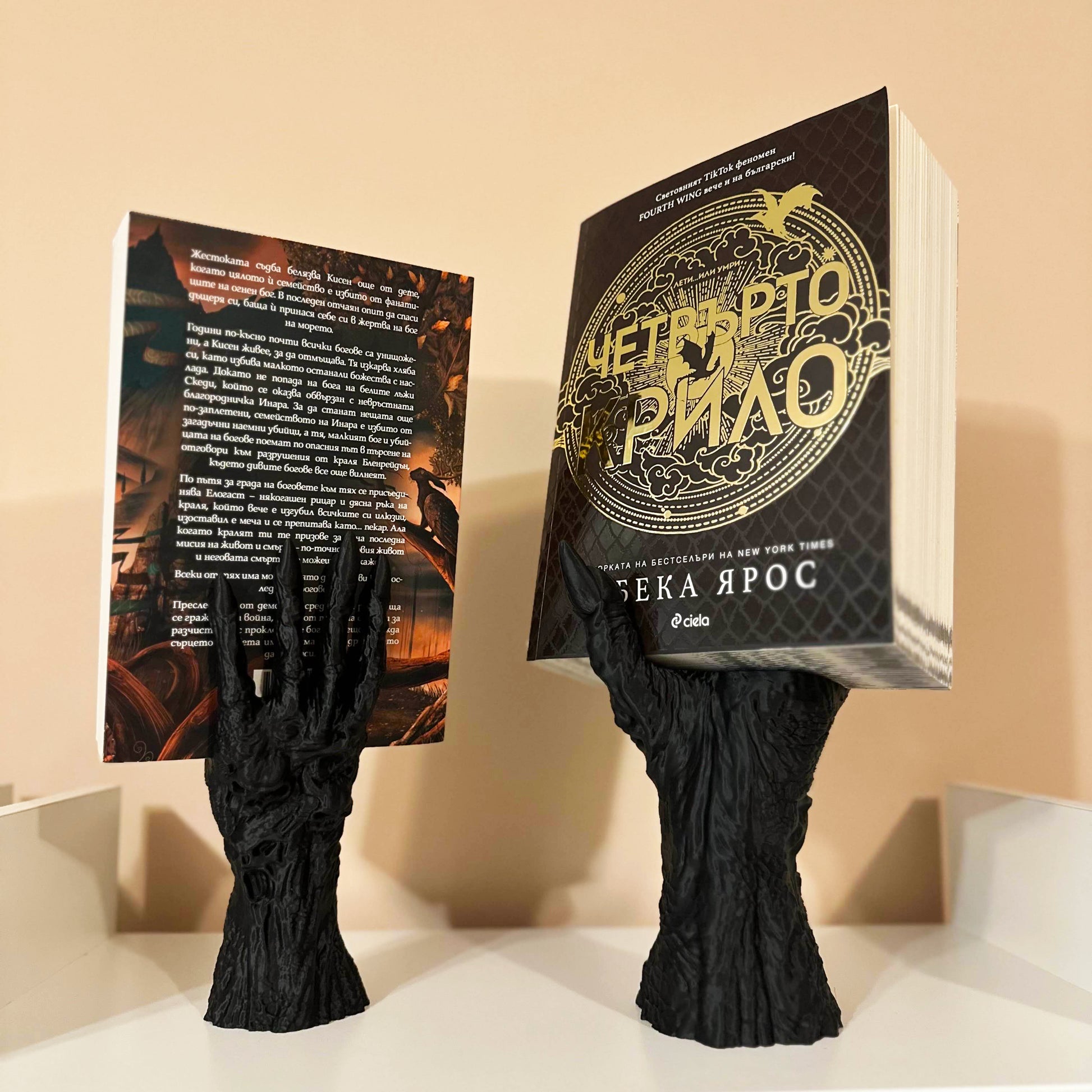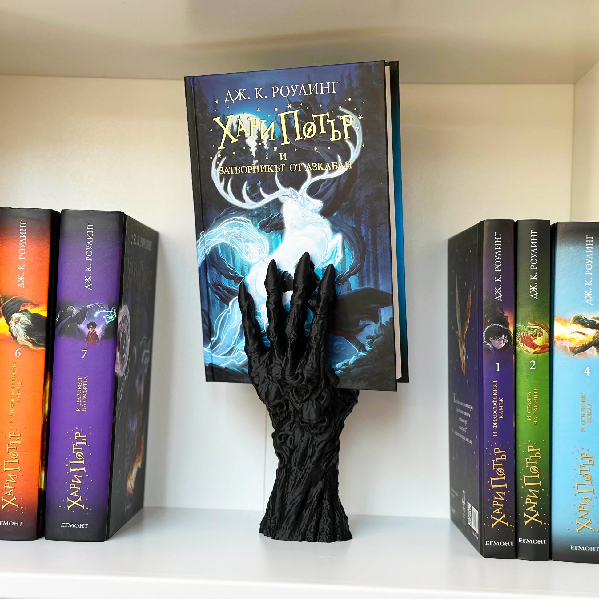Книгодържач наподобяващ череп или символ на смъртожадните от Хари Потър.