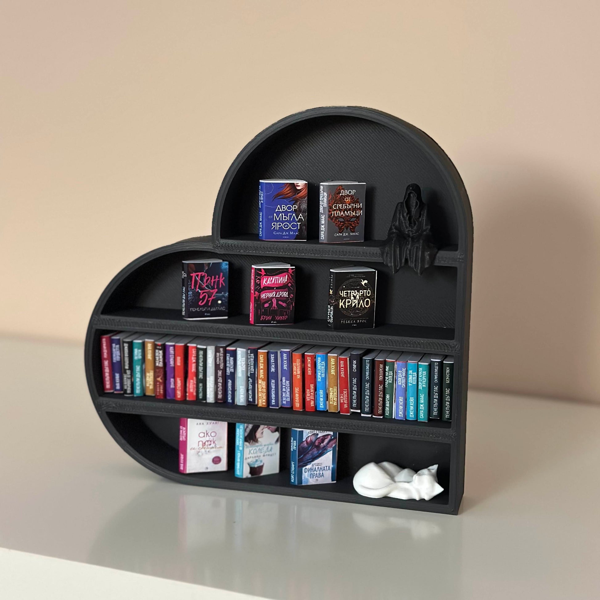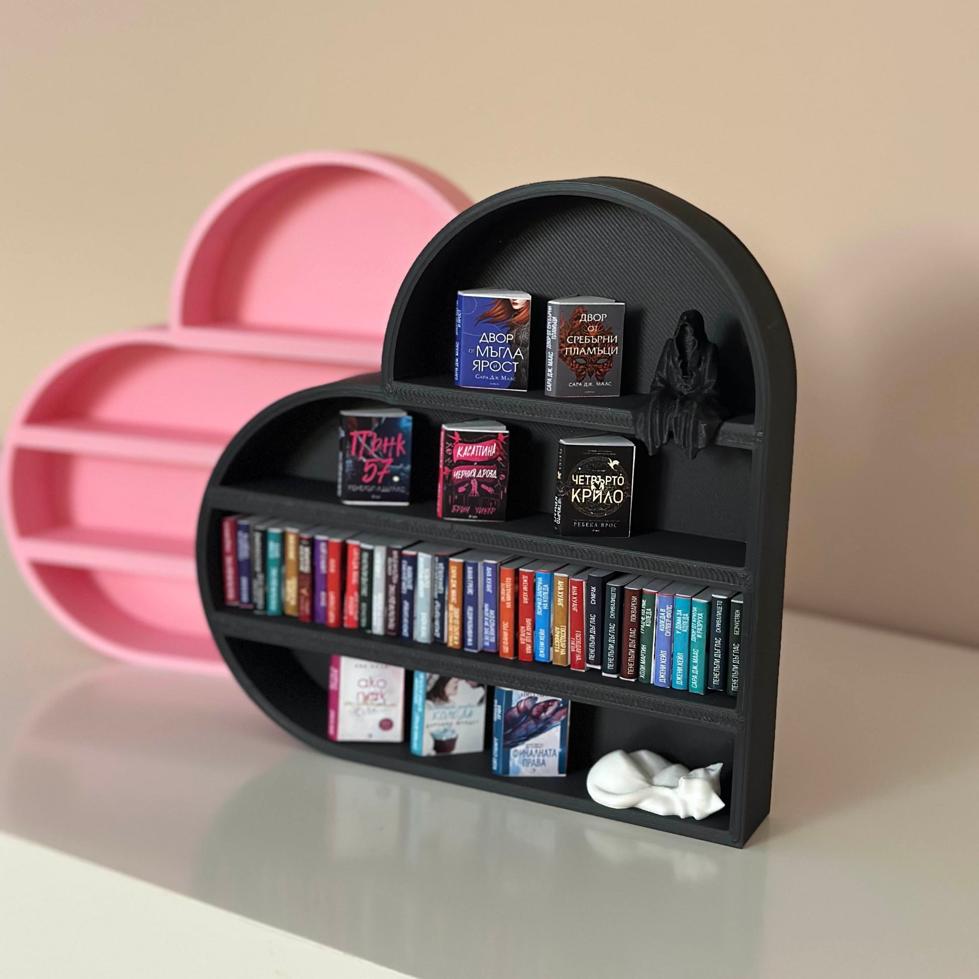 Запознайте се с нашия 3D-принтиран миниатюрен рафт за книги във формата на сърце – създаден за любители на книгите и почитатели на електронни книги! ✨
