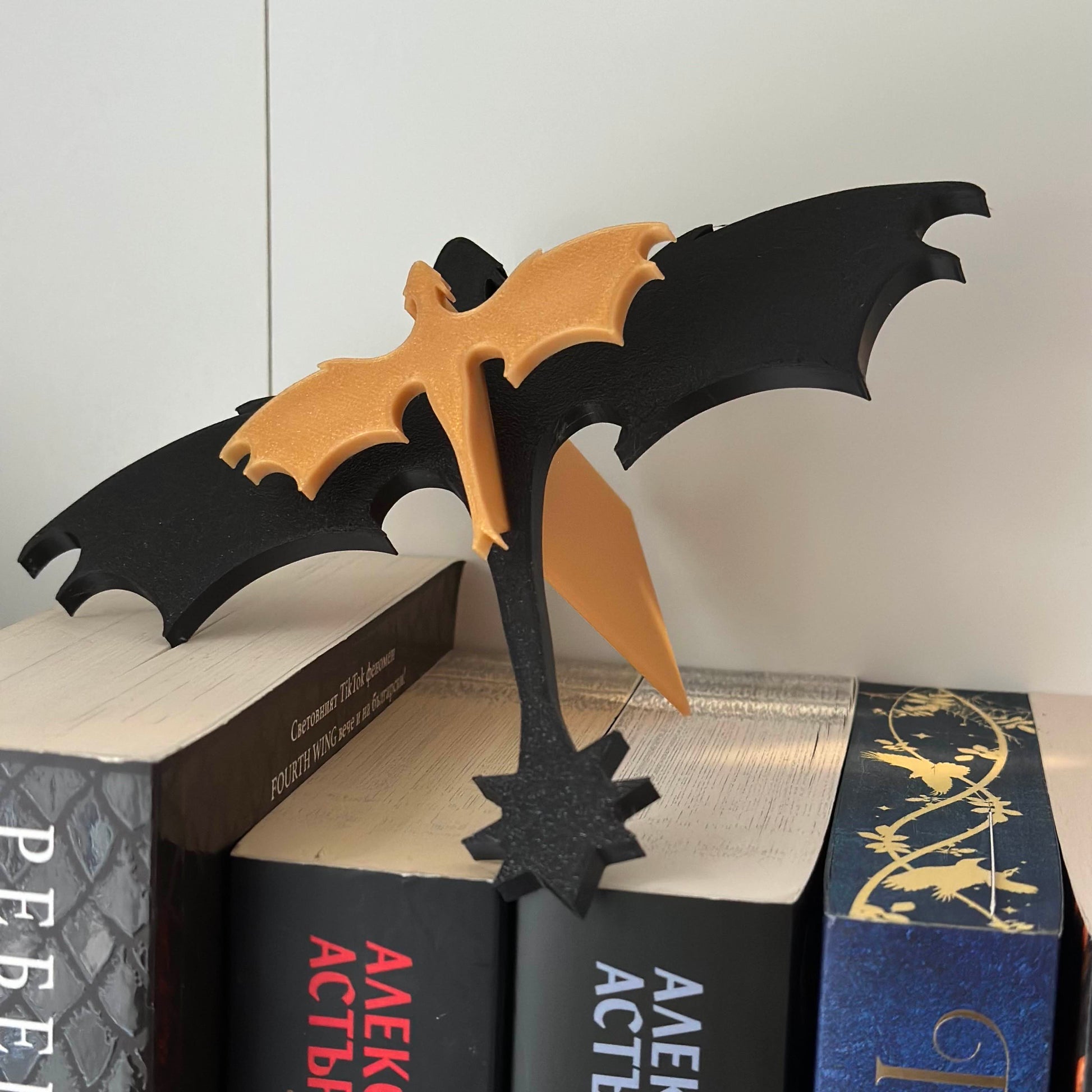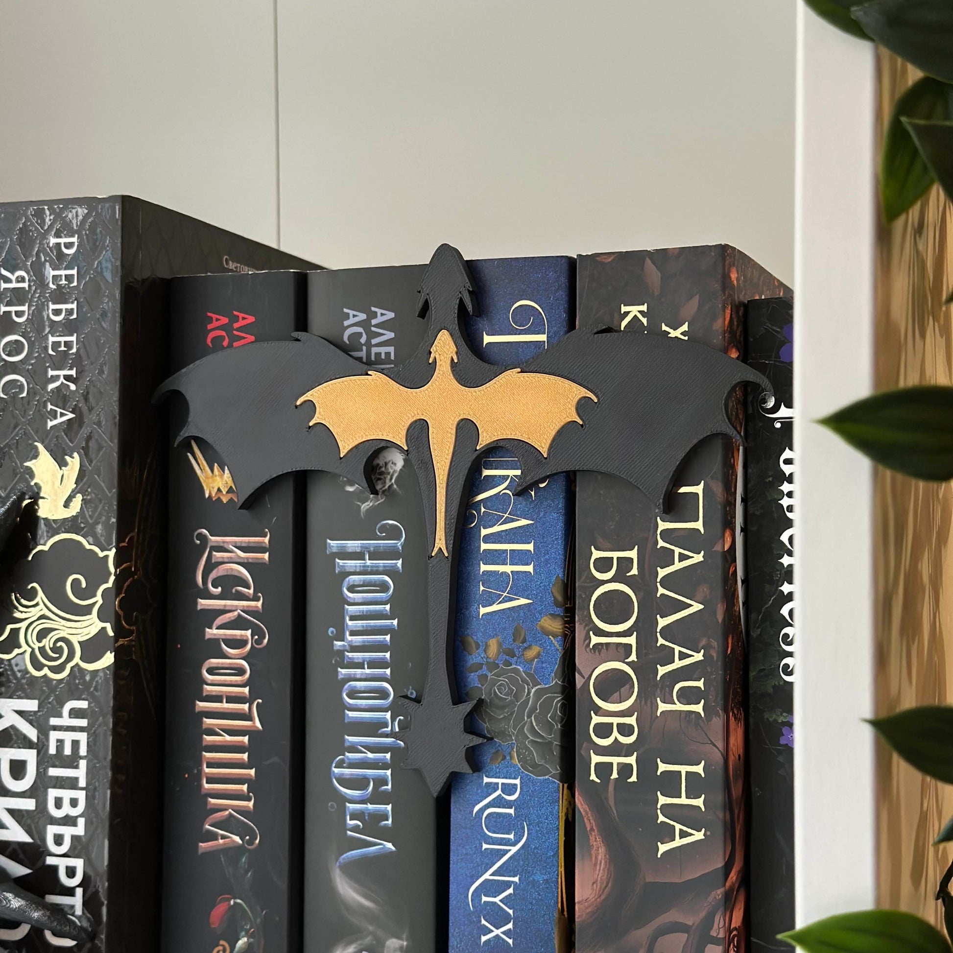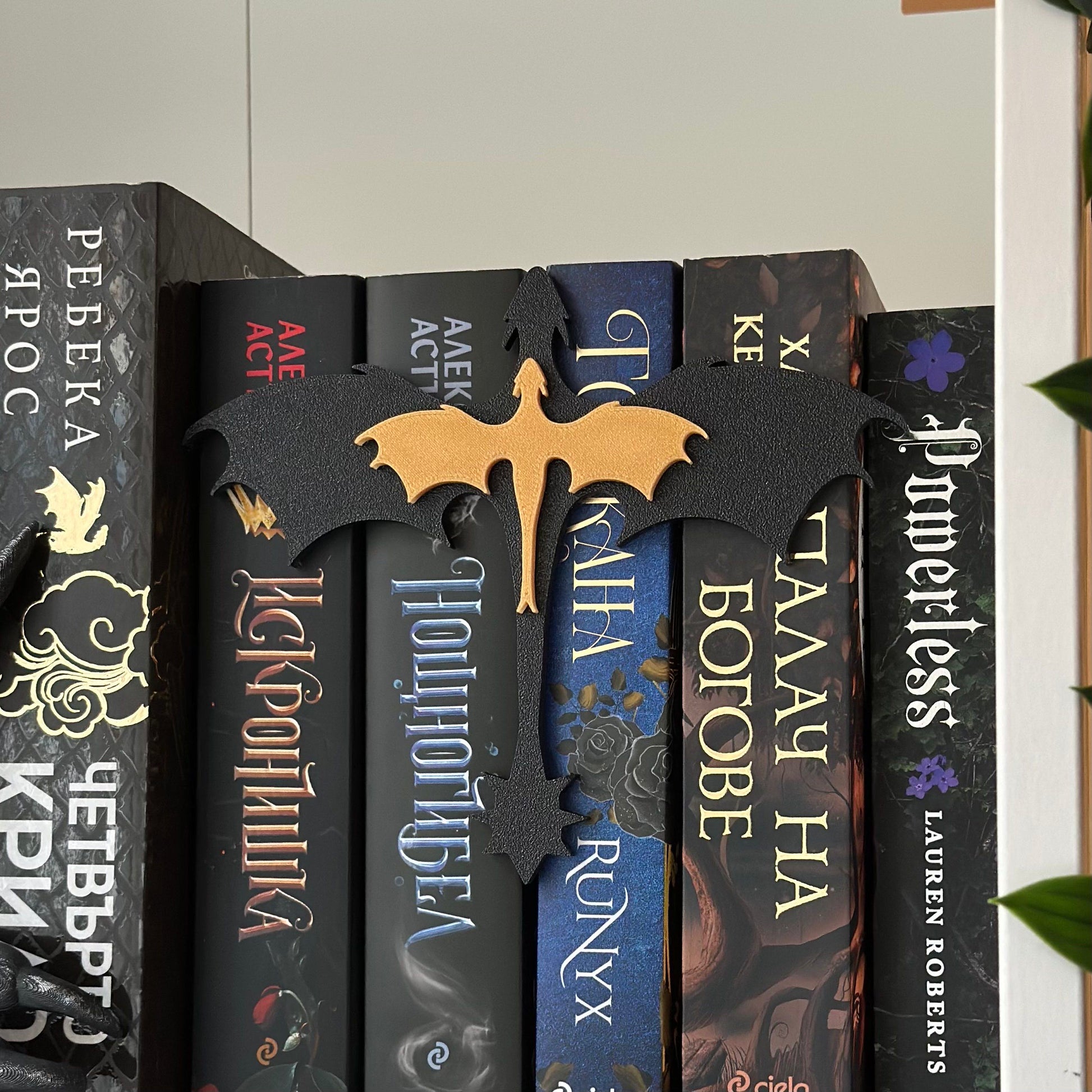 Декорация за библиотека летящи дракони, вдъхновени от Андарна и Терн от Четвърто Крило.