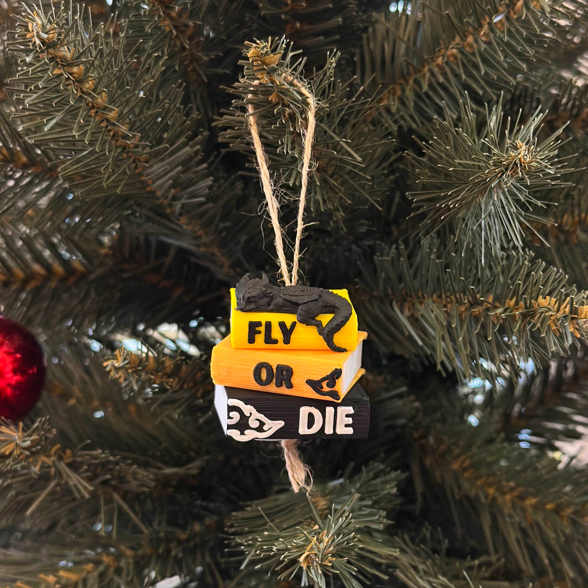 Фентъзи украса за елха, създадена за феновете на Четвърто крило, дракони и магия. Идеална за декориране на вашата библиотека, кътче за книги или елха с нотка драконова енергия.