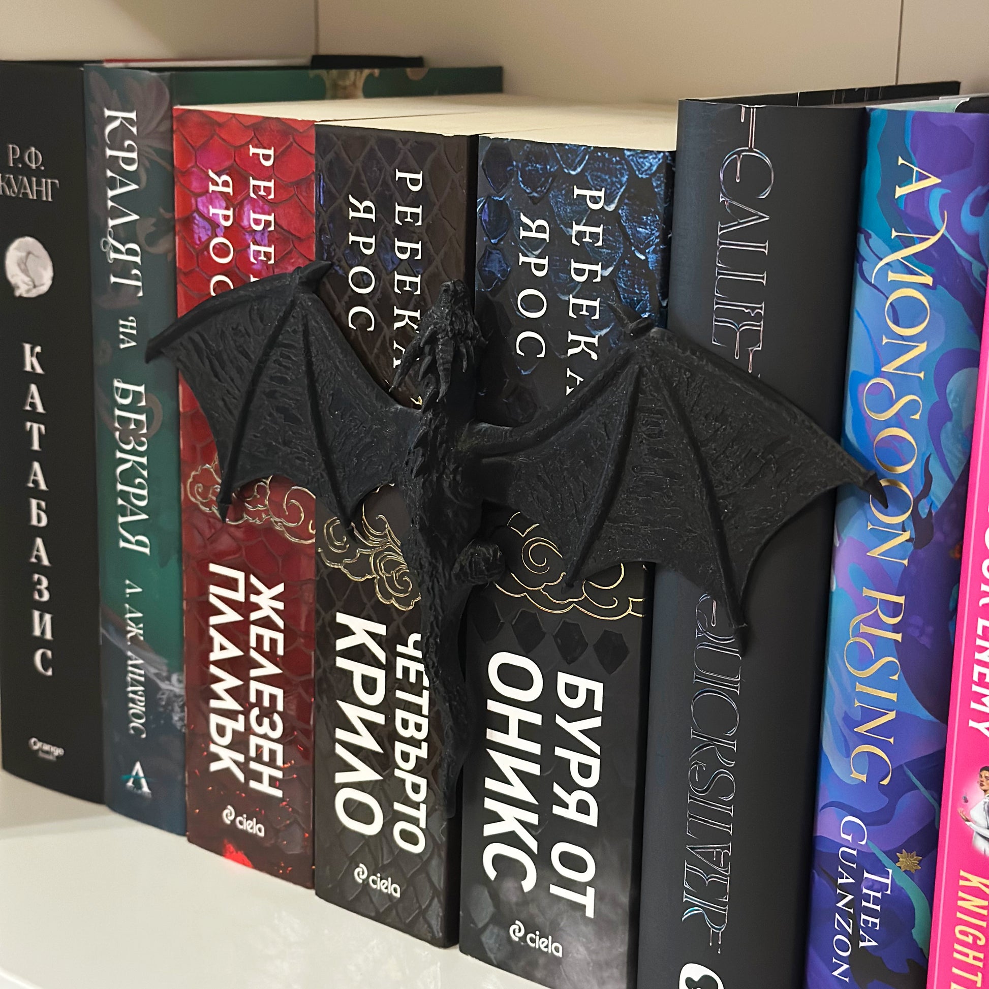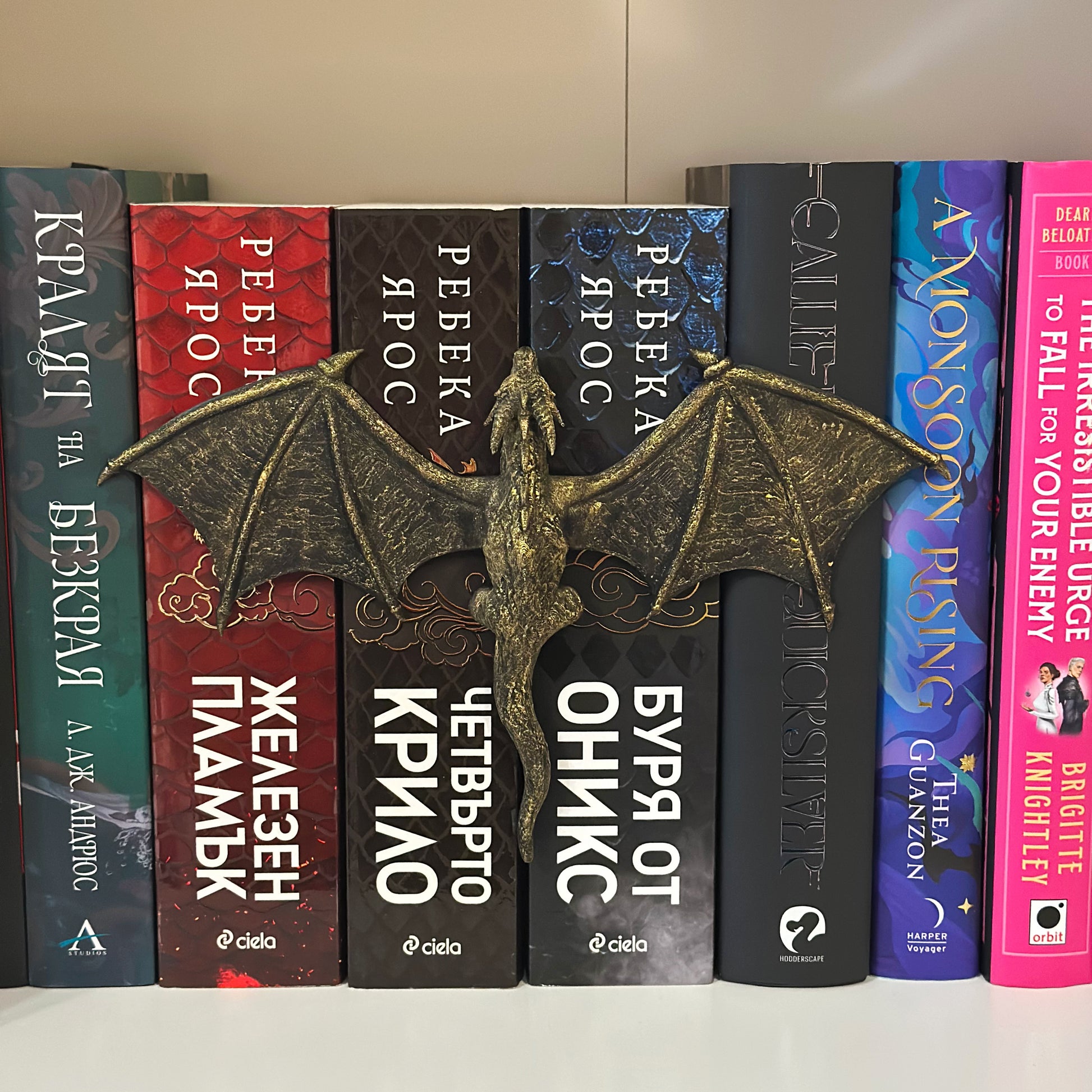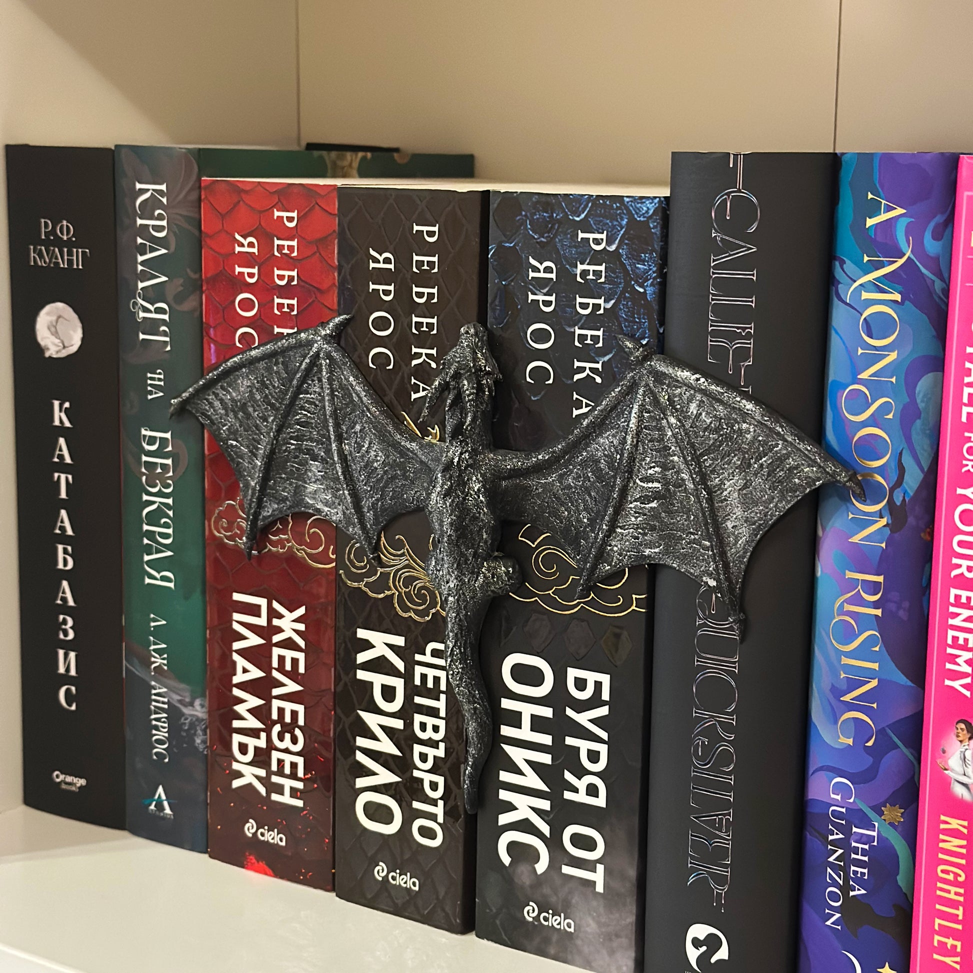 Перфектно допълнение към всяка библиотека - този дракон, вдъхновен от света на Четвърто Крило, нежно „прегръща“ гърбовете на книгите ти.