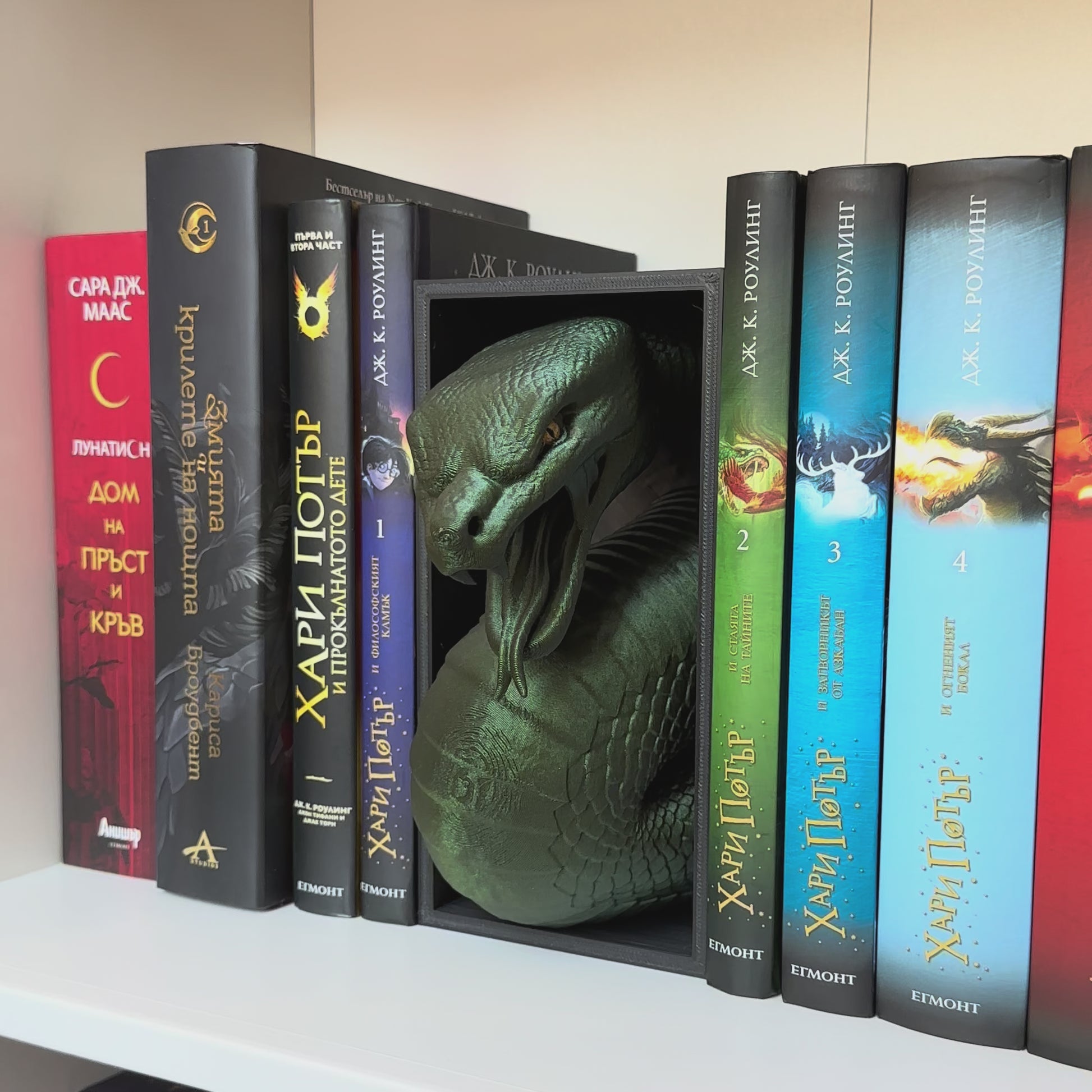 Този страхотен кът за книги във формата на змия е невероятна декорация за всяка библиотека, особено за тези, които са фенове на Хари Потър (дом Слидерин) или други фентъзи саги.